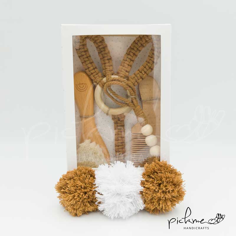 Gift box για νεογέννητο – Ξύλινο σετ μακραμέ